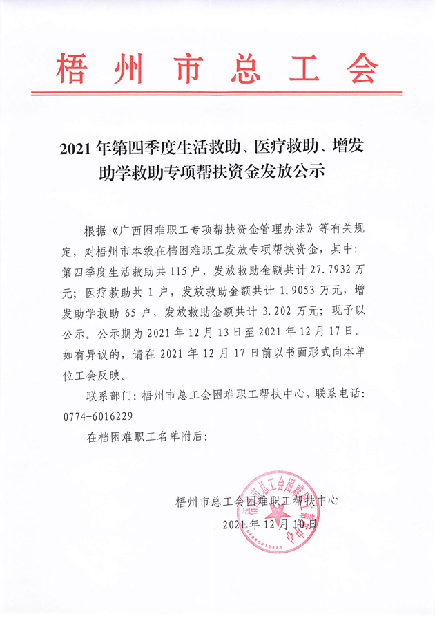 2021年第四季度生活救助、醫(yī)療救助、增發(fā)助學(xué)救助專(zhuān)項(xiàng)幫扶資金發(fā)放公示