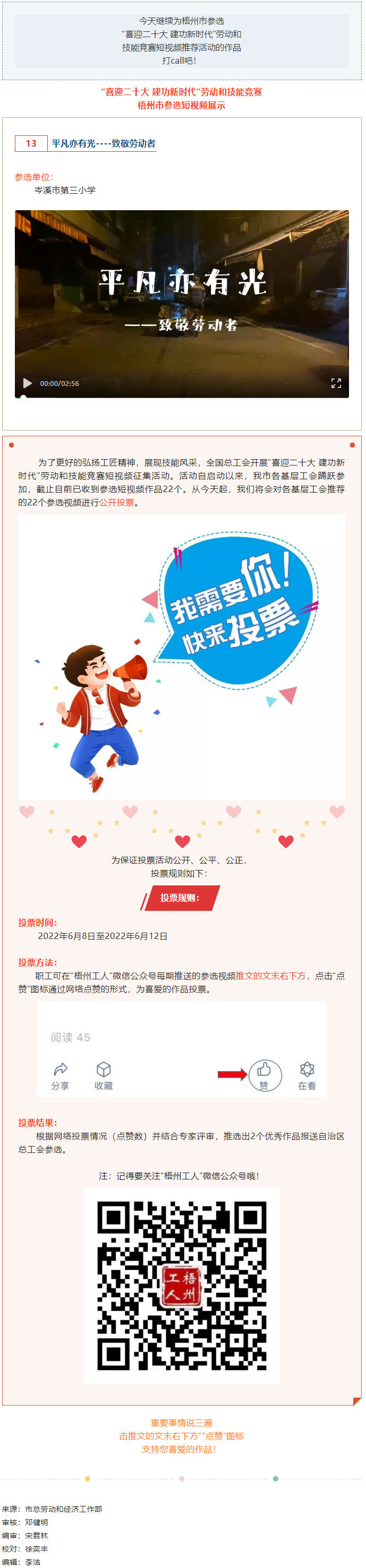 岑溪市第三小學(xué)參選作品丨“喜迎二十大 建功新時(shí)代” 勞動(dòng)和技能競(jìng)賽短視頻投票活動(dòng)開(kāi)始啦!