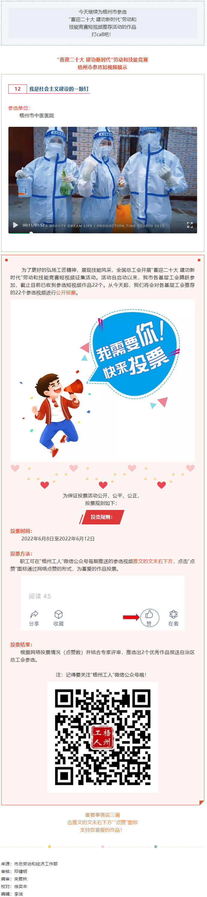 梧州市中醫(yī)醫(yī)院參選作品丨“喜迎二十大 建功新時代” 勞動和技能競賽短視頻投票活動開始啦!