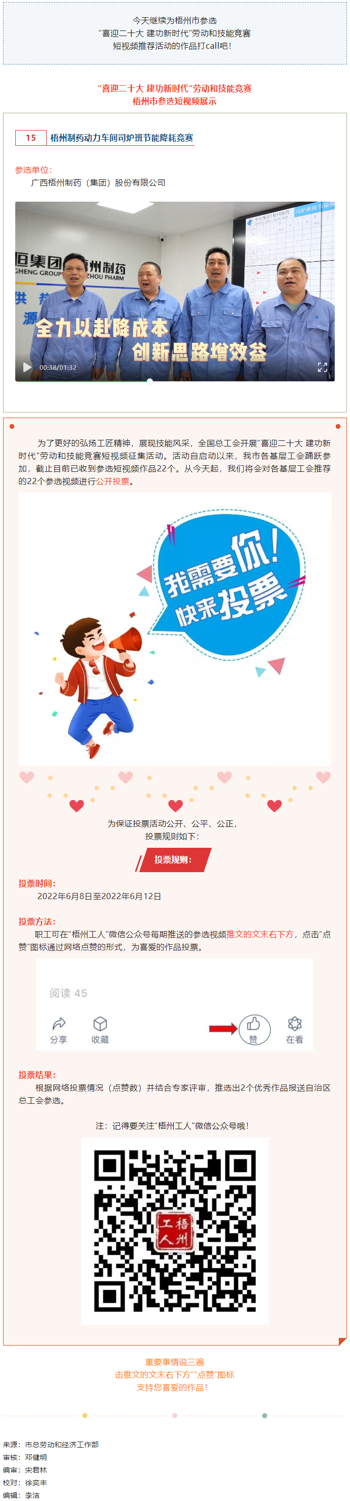 廣西梧州制藥(集團(tuán))股份有限公司參選作品丨“喜迎二十大 建功新時代” 勞動和技能競賽短視頻投票活動開始啦!