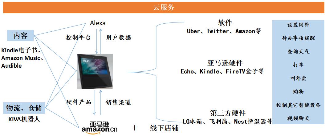 2.亞馬遜具有深厚的電商基礎(chǔ),并在內(nèi)容、硬件、平臺(tái)、云計(jì)算、物流倉(cāng)儲(chǔ)等領(lǐng)域布局,通過智能音箱整合軟件+硬件+平臺(tái)+內(nèi)容資源,進(jìn)一步盤活電商資源。