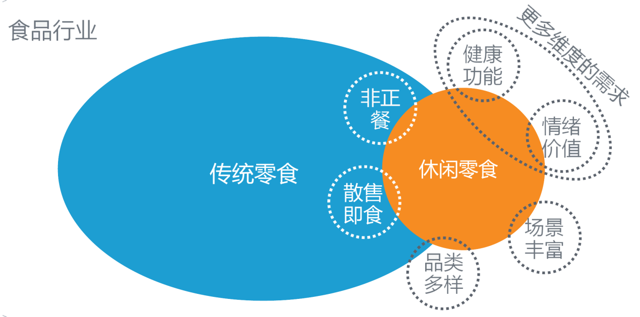 目前行業(yè)專家和資深從業(yè)者,往往認為“休閑零食”和“休閑食品”,甚至是“零食”這樣的產(chǎn)品概念雖然互有區(qū)別,但某種意義上又是互相交融的,畢竟不同的概念也處在不停的變動中,舊的概念在升級,新的概念在擴展: