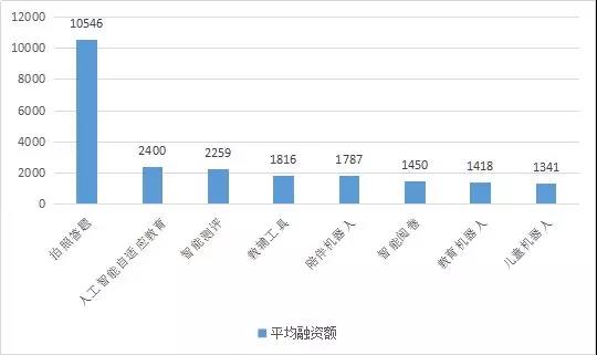 人工智能自適應教育項目的融資事件數量很少排在倒數第二的位置,但平均融資額卻達到了第二??梢婋m然行業(yè)處于早期階段,但相對于其他細分領域來說更受資本的青睞。