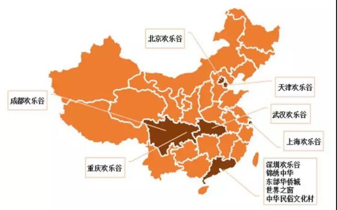 華僑城文旅板塊的重中之重是“歡樂(lè)谷”,已在深圳、北京、成都、上海、武漢、天津、重慶這7個(gè)城市形成連鎖經(jīng)營(yíng),南京、西安歡樂(lè)谷在建設(shè)中?!皻g樂(lè)谷”的布局集中在經(jīng)濟(jì)發(fā)達(dá)的一線城市、直轄市和省會(huì)城市,重點(diǎn)布局深圳。近年來(lái),除了總部深圳,華僑城在中國(guó)旅游資源最豐富的區(qū)域如云南、海南、陜西、四川、山西、北京、河北等地,廣泛布局全域旅游新業(yè)務(wù)。