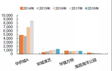 總體來(lái)看,華僑城、華強(qiáng)方特、長(zhǎng)隆集團(tuán)、海昌海洋主題公園以器械游樂(lè)類和動(dòng)物海洋類為主,可復(fù)制性強(qiáng),業(yè)務(wù)類似,競(jìng)爭(zhēng)較激烈,因此其區(qū)域布局重合度較少,避開(kāi)了競(jìng)爭(zhēng)。除了長(zhǎng)隆布局集中外,其他四家公司布局區(qū)域都比較分散,且布局側(cè)重點(diǎn)不同。華僑城重點(diǎn)布局一線城市和省會(huì)城市,華強(qiáng)方特主要布局二三線城市,長(zhǎng)隆集團(tuán)布局廣州和珠海,海昌海洋重點(diǎn)布局省會(huì)城市、直轄市等相對(duì)發(fā)達(dá)城市,宋城演藝其他四家公司不構(gòu)成直接競(jìng)爭(zhēng),布局主要在熱門(mén)旅游城市。